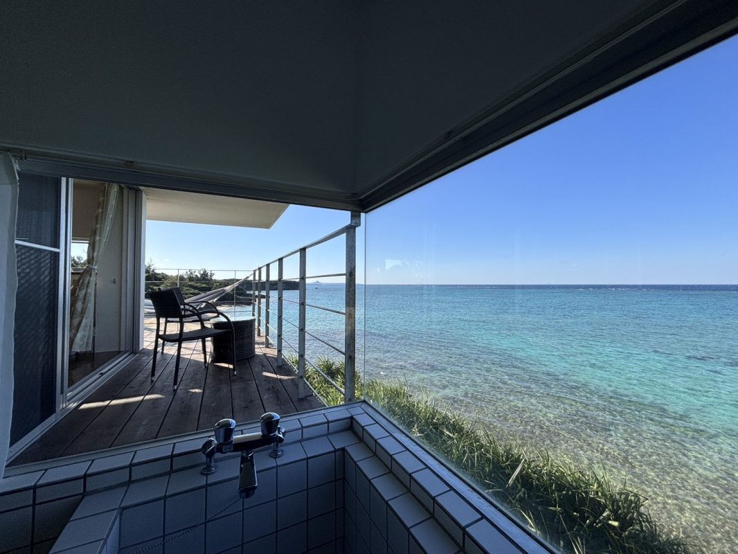 オーシャンビューバス/シャワー/ウォシュレット付きトイレ/液晶テレビ/冷蔵庫/電子レンジ/ドライヤー/湯沸かしポット/ドルチェグスト/島ぞうり/ハンモック/ミネラルウォーター